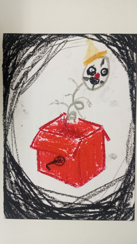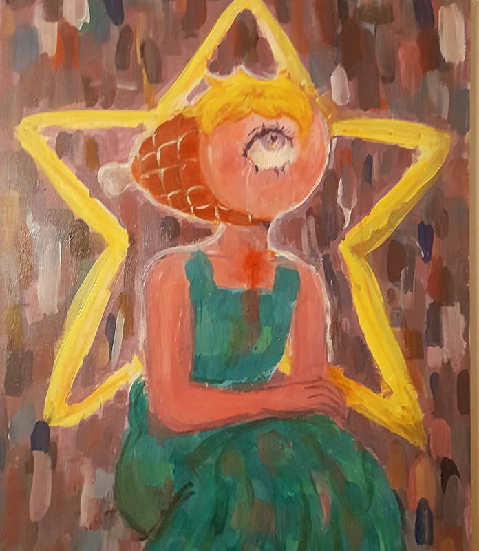 Comme mentionné plus tôt, j’ai abordé le thème de la lumière principalement de manière métaphorique à travers plusieurs éléments dans mon œuvre. J’ai d’abord choisi de représenter Jésus-Christ, symbole de pouvoir, de bienveillance et de savoir infini, qualités que l’on peut associer à une lumière, comme celle qui émane de lui et celle qui brille dans ses mains. Son visage sombre, sur lequel on ne distingue que trois yeux et une bouche, symbolise l’obscurantisme dont peuvent faire preuve certains croyants, mais aussi celui de l’Église qui a freiné de nombreuses avancées scientifiques (comme l’interdiction de disséquer les corps de personnes décédées, par crainte de perturber l’intégrité du corps humain) et sociales (par exemple, l’interdiction du mariage homosexuel, jugé "illégitime" car ne permettant pas de procréer). Le troisième œil sur son front représente la connaissance infini dont il fait preuve, tandis que sa bouche, dénudée de lèvres et ne laissant apparaître que ses dents, symbolise la violence et l’agressivité que certains religieux peuvent justifier au nom de leur(s) Dieu(x) (comme les actes terroristes, les croisades et autres attaques, dans différentes religions, mais particulièrement dans le christianisme). La tunique rouge, couleur associée à l’agressivité et à la violence, rappelle également celle qu’il portait lors de sa crucifixion, un acte de bonté suprême, lorsqu’il s’est sacrifié pour l’humanité, pour nous ses frères et ses sœurs. Toutefois, l’obscurité semblant l’entourer est presque contenue par un halo rouge, qui représente le Saint-Esprit, ce halo rouge symbolise la protection et le réconfort que la foi peut offrir face aux événements difficiles et aux épreuves auquel nous pouvons faire face. Ses yeux, fatigués, semblent presque mourants, suggérant le fardeau de régner sur des fidèles qui ne cessent de se quereller malgré ses ordres de “nous aimer les uns les autres”, rendant son règne inutile aux yeux de nos pauvres pécheurs. Les couleurs sont volontairement ternes afin de renforcer l’aspect morbide et imposant de la toile, tout en faisant ressortir la lumière qui émane de lui. L’arrière de la toile est peint dans un bleu vif pour accentuer l’obscurité de la peinture de l’autre côté de la toile (me servant également de signature auprès des autres).