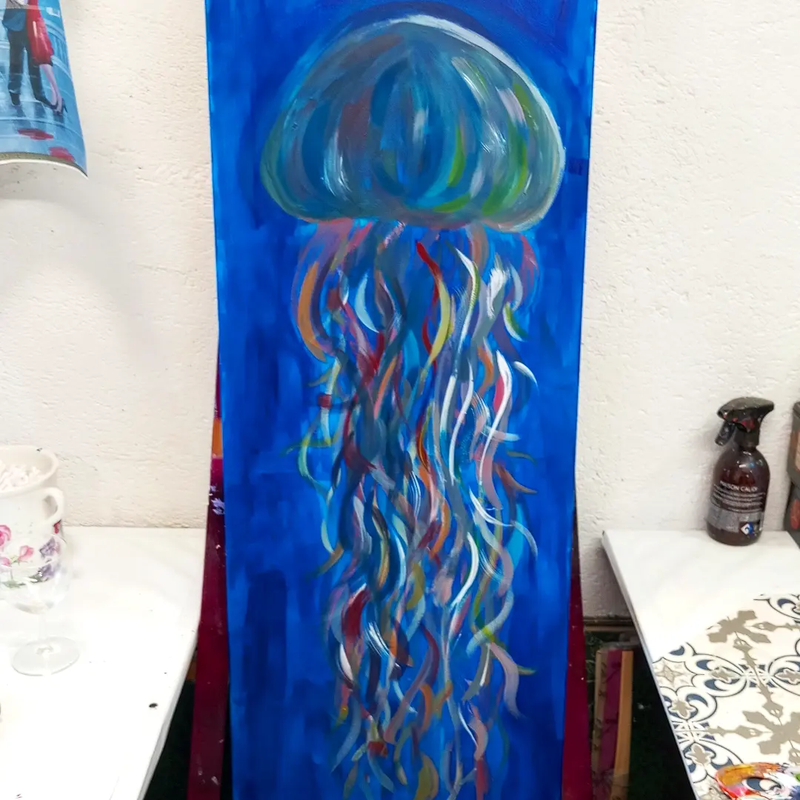 Pour réaliser cette œuvre, j’ai opté pour de la peinture acrylique, n’ayant pas de peinture à l’huile à disposition. Mon but était de reproduire le style spécifique des œuvres religieuses de la Renaissance en utilisant les matériaux disponibles. J’ai choisi une grande toile, que j’avais également à disposition , afin de transmettre la grandeur et l’imposante posture de Jésus.